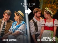Уважаемые зрители, завтра 15 МАРТА в 17:00 вместо спектакля «МЕСЯЦ В ДЕРЕВНЕ» будет показан спектакль «БЕЗУМНЫЙ ДЕНЬ, ИЛИ ЖЕНИТЬБА ФИГАРО»!