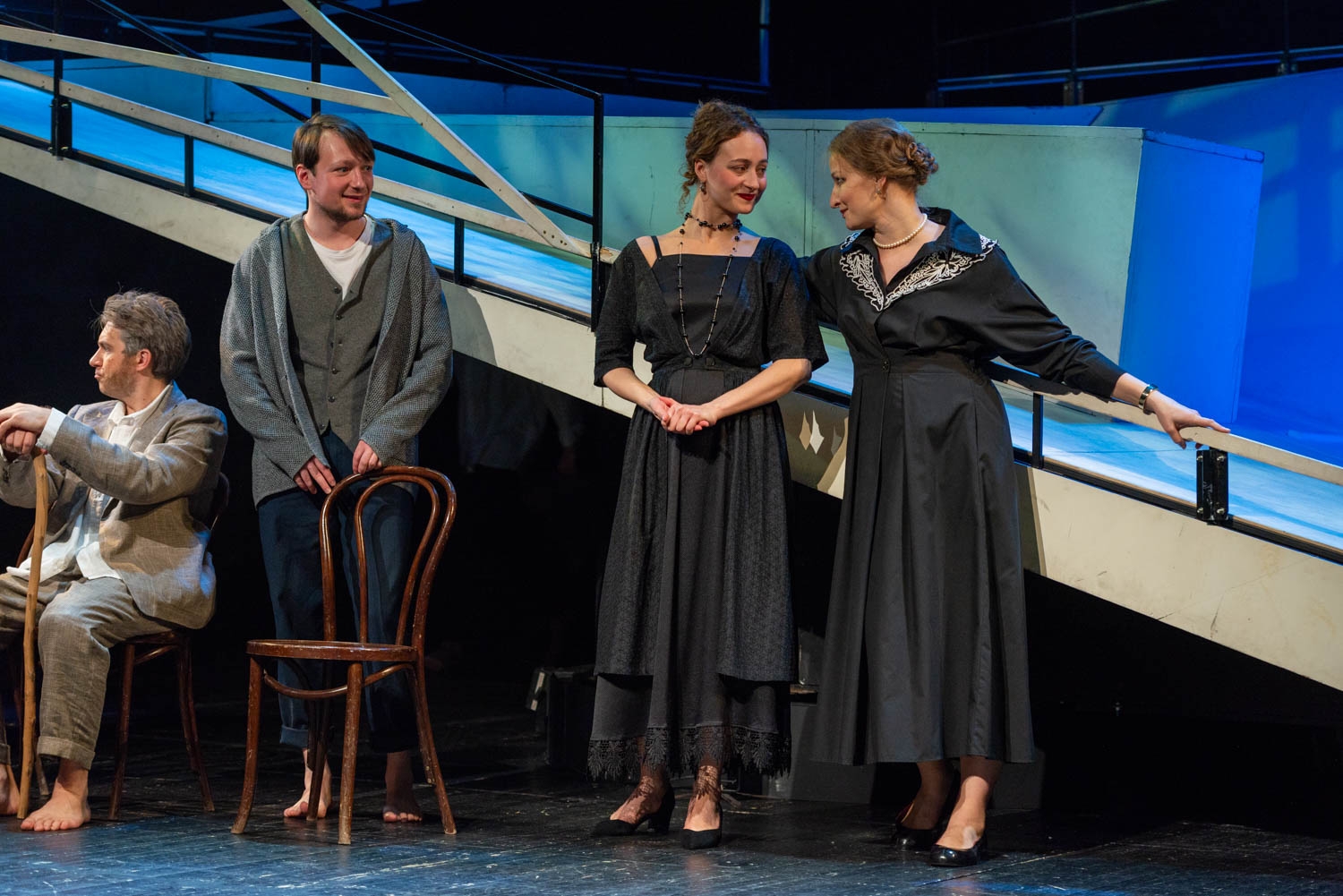 Спектакль начинается с мощного пролога — сцены смерти Антона Павловича Чехова в Баденвайлере. Сам писатель в пронзительном исполнении Павла Полякова становится главным проводником и тихим наблюдателем этого мира. Он, словно призрак, появляется среди своих же персонажей, и вся постановка начинает восприниматься как галлюцинаторный поток сознания умирающего гения, где все его творения, вся его боль и все его герои смешались в едином предсмертном видении.